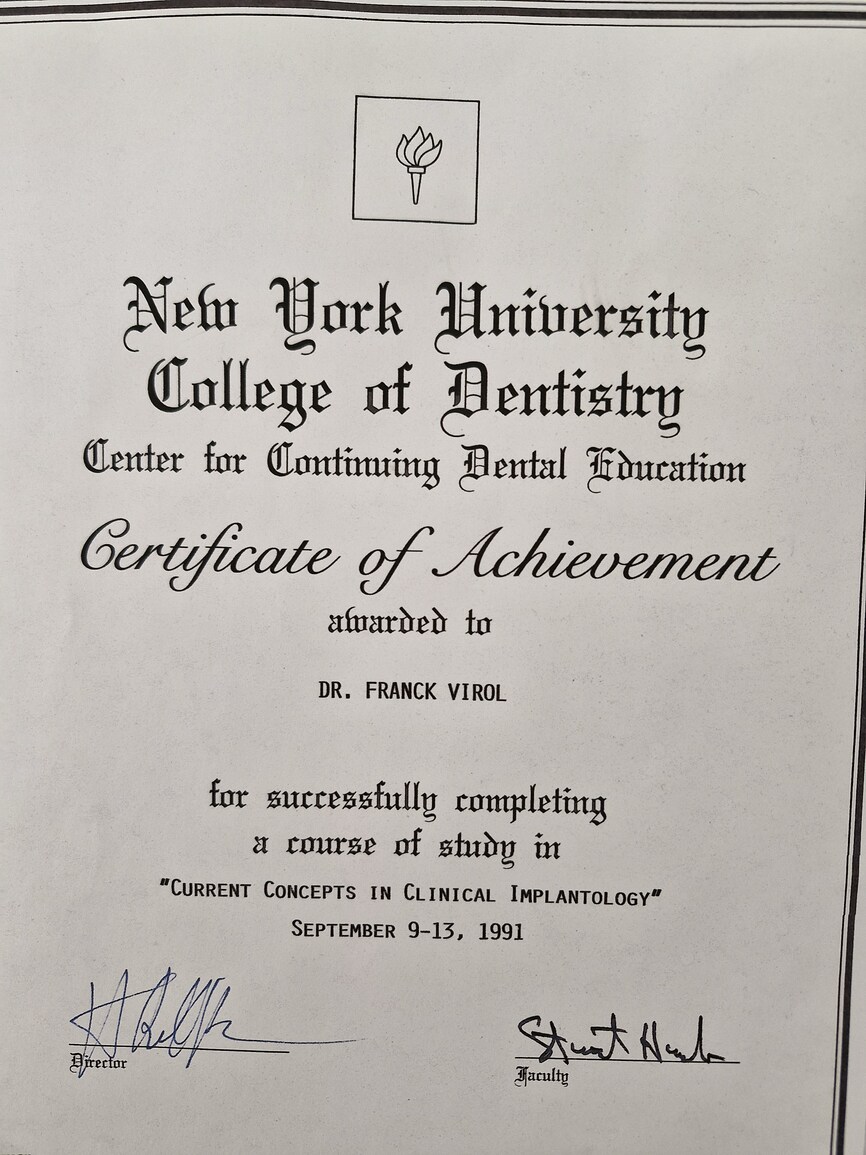 - Diplôme Universitaire de Pathologie et Chirurgie buccale – Université de Dijon